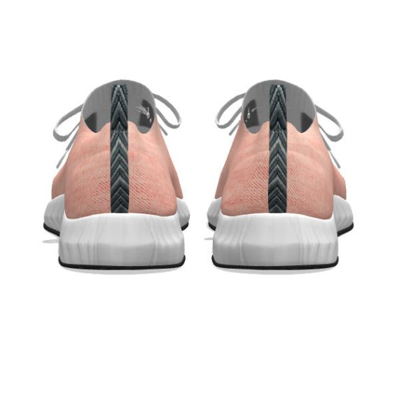 A denim fabric pattern combines with a neutral, peachy color to transform an otherwise plain sneaker into a unique shoe?that?matches almost anything.